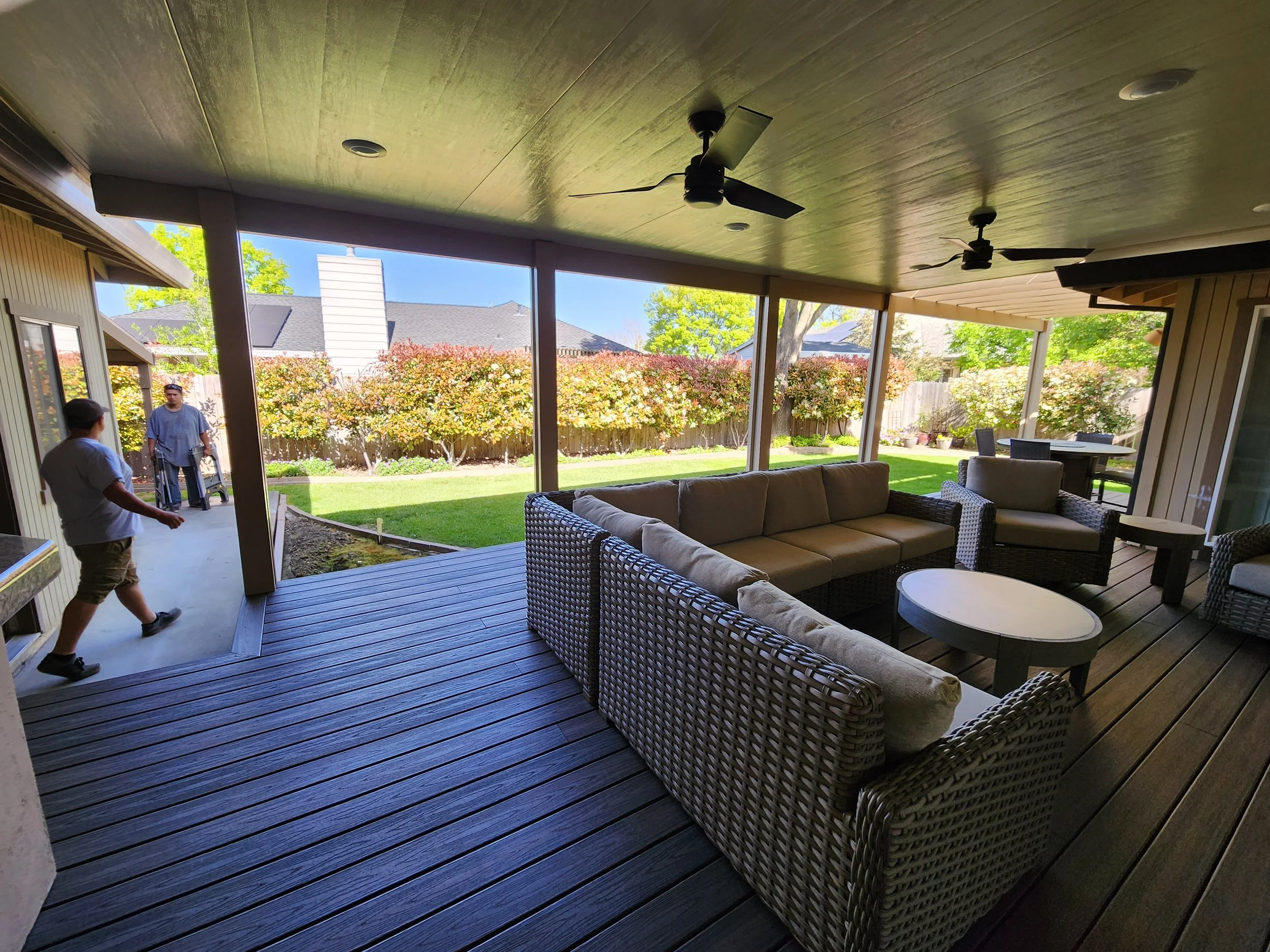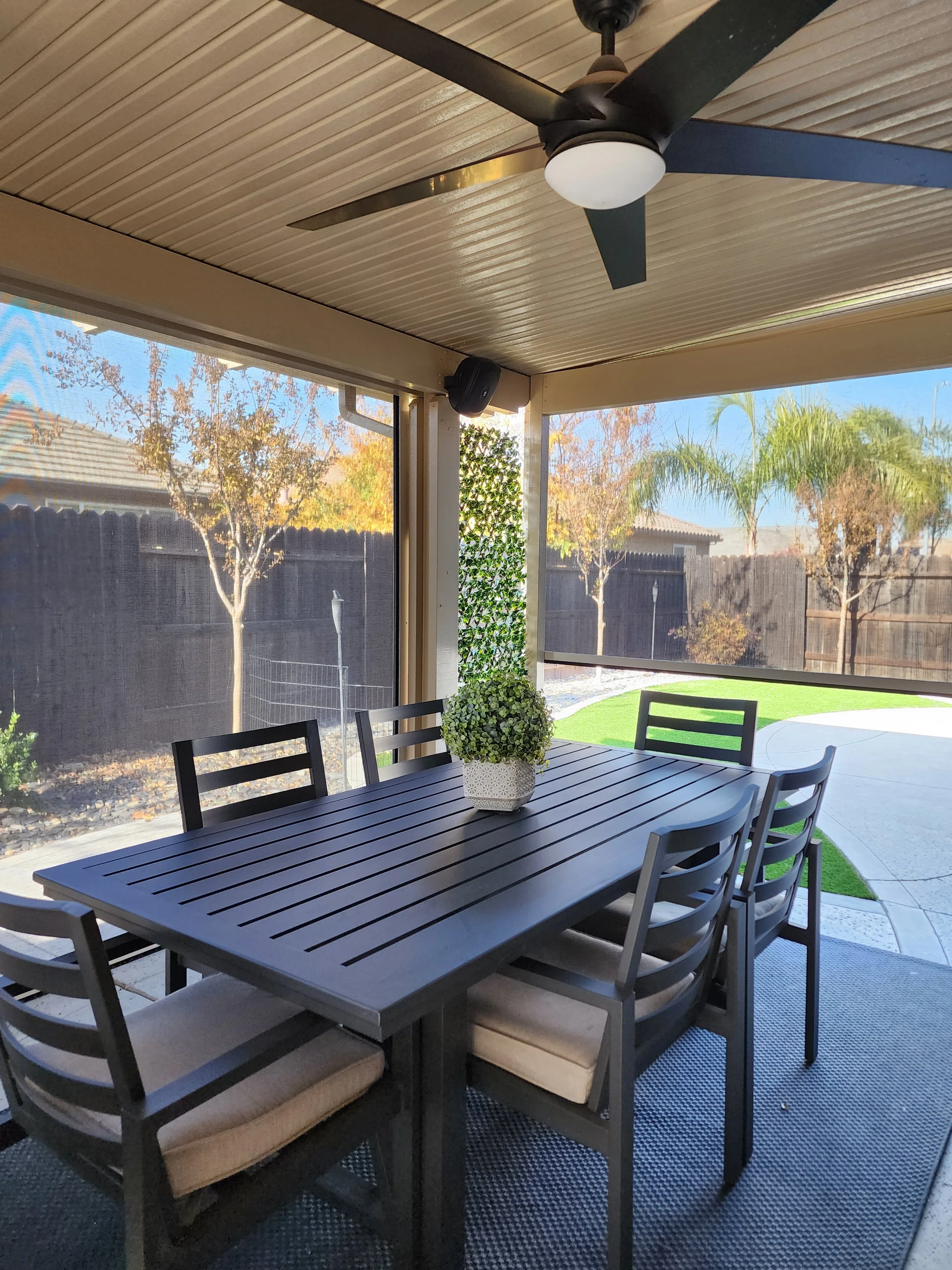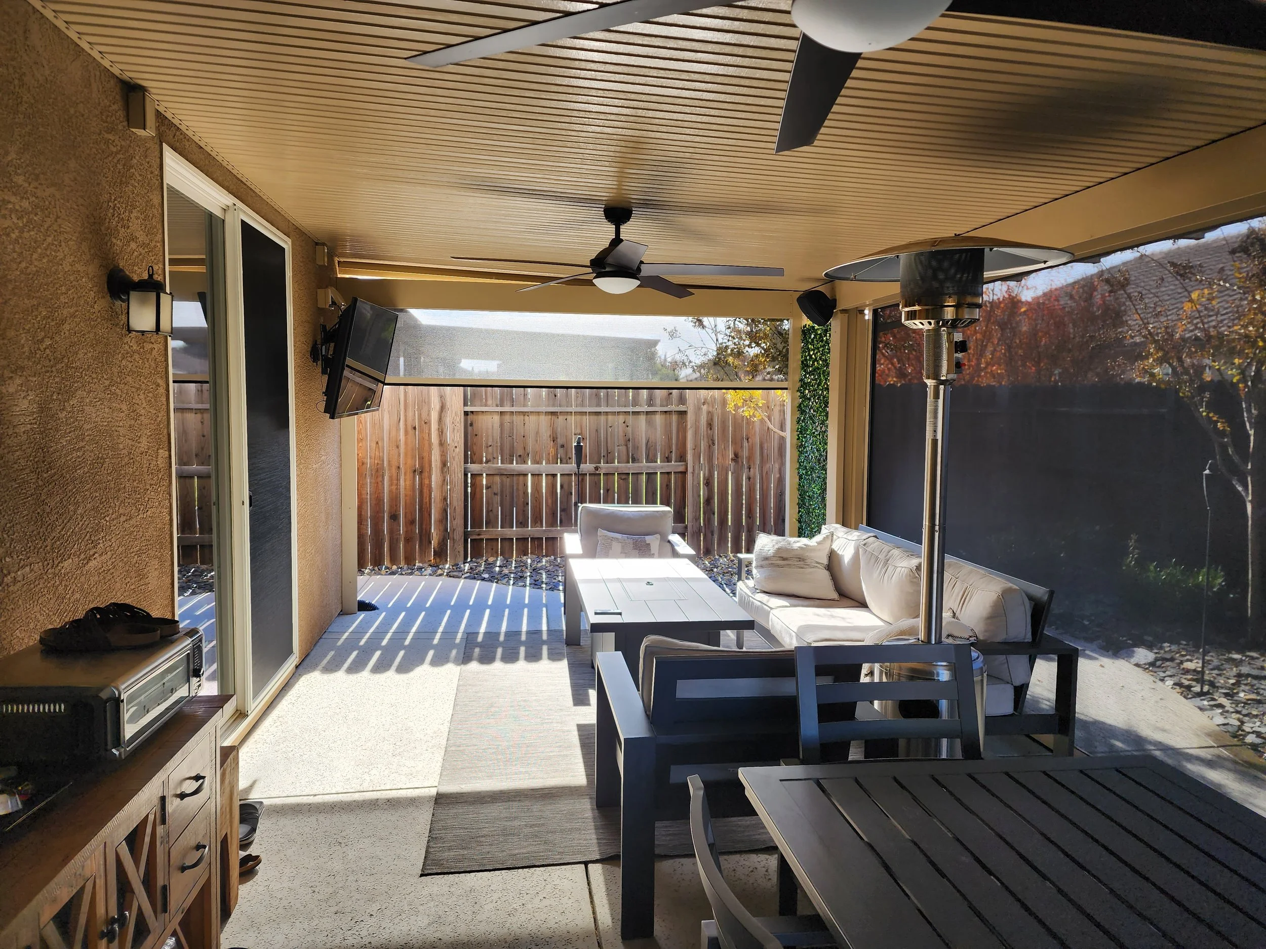 Enjoy your outdoor space year-round. Solid patio covers protect yo, your patio furniture, and your house from sun, rain, and debris.