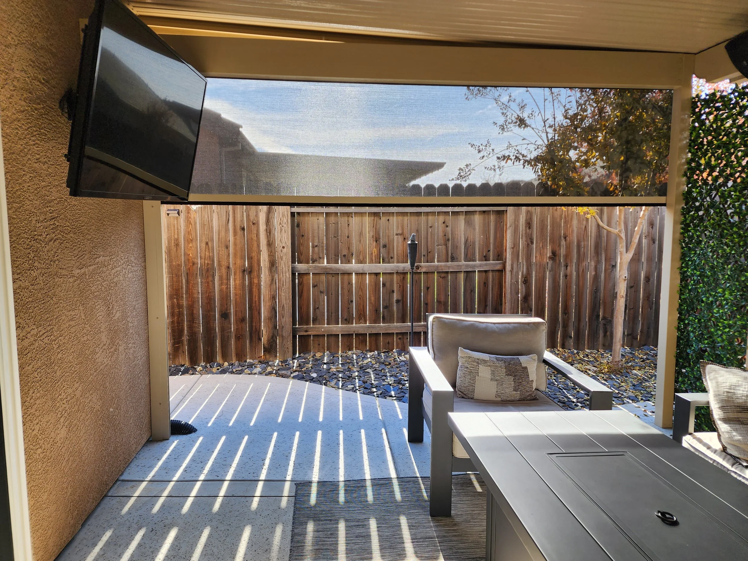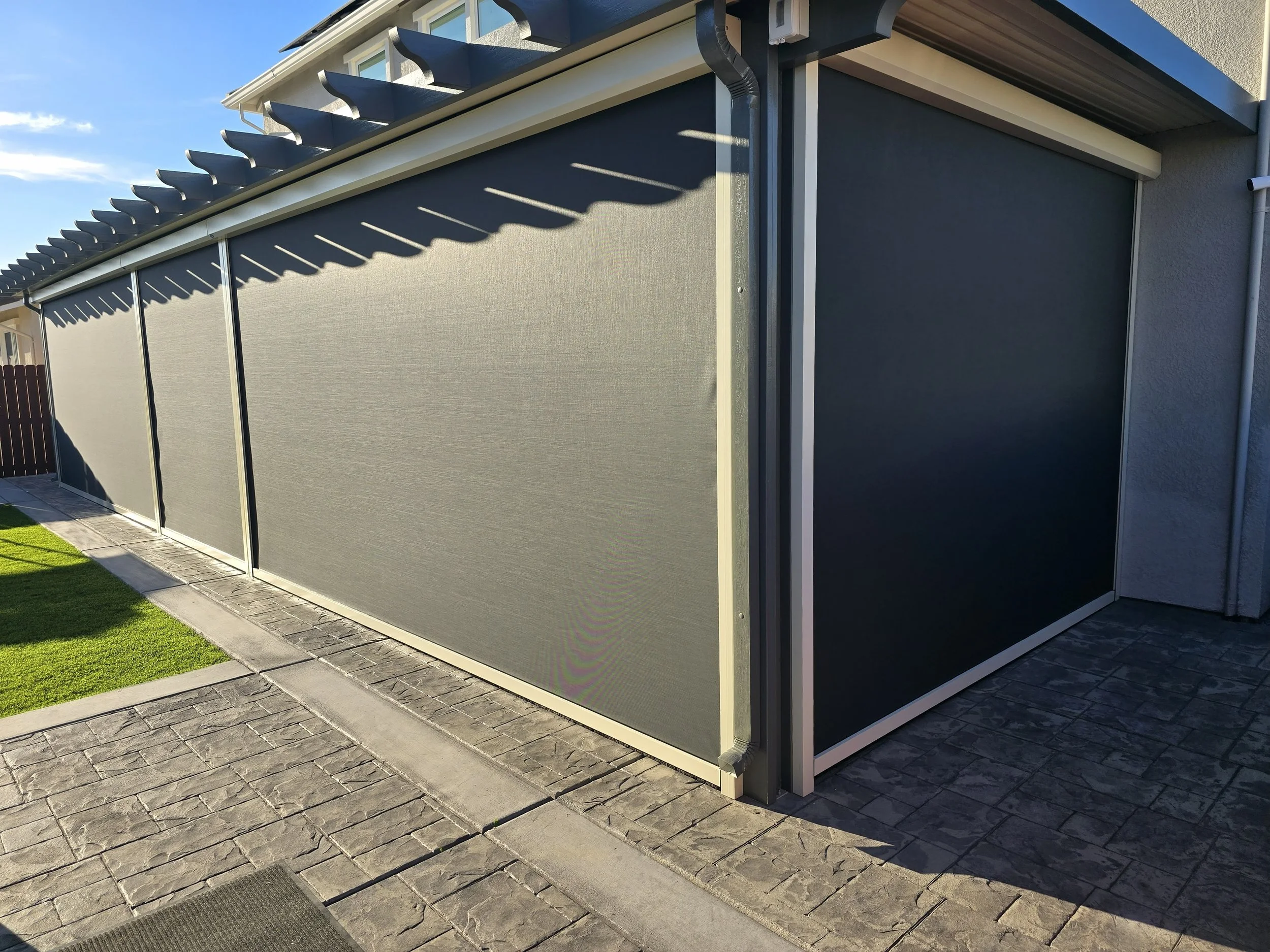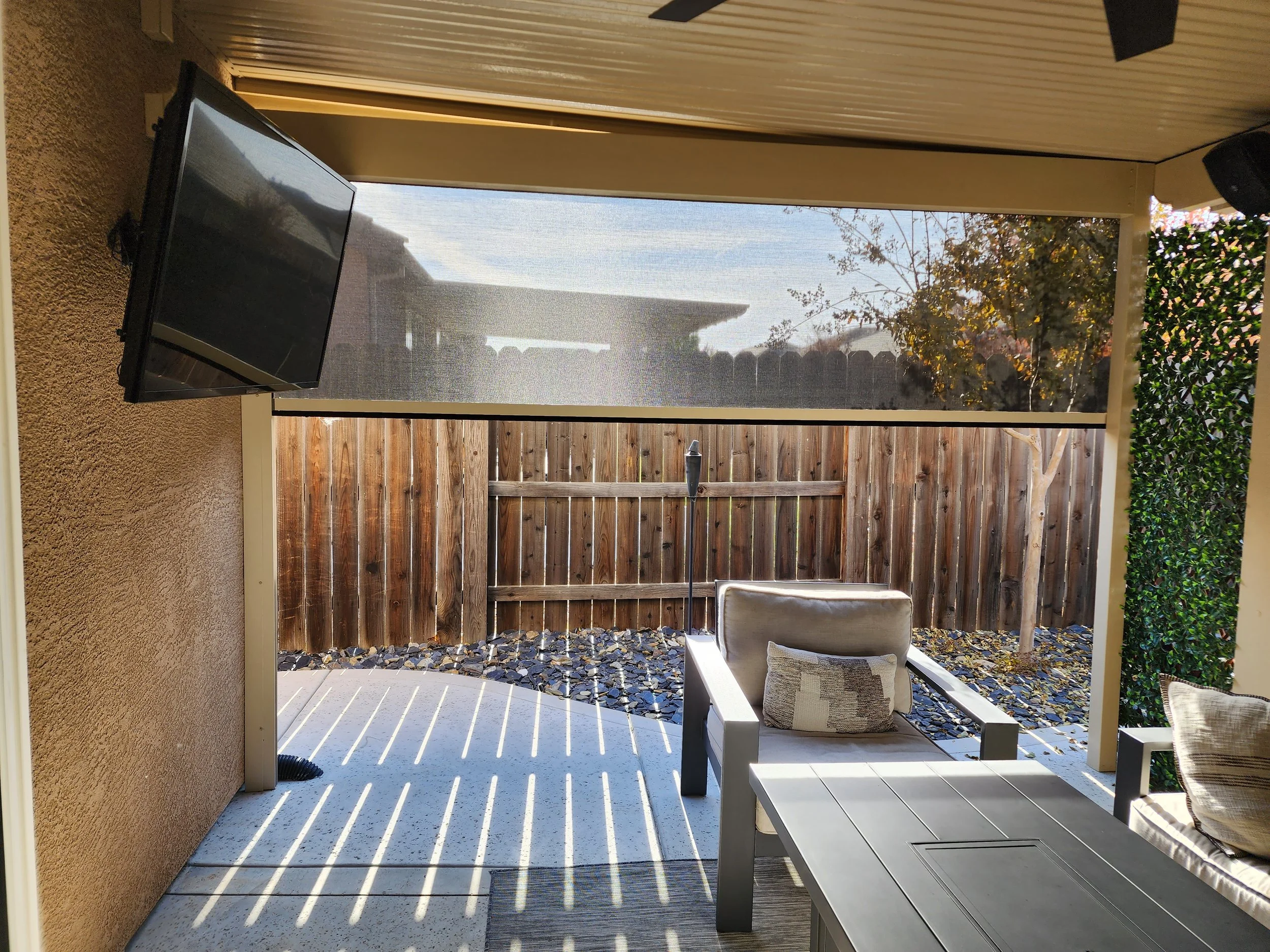 Motorized exterior sun shades provide effortless control over sunlight, heat and privacy with a touch of a button, helping keep your outdoor spaces cooler and more comfortable. They also protect furniture from UV damage while adding a sleek, modern upgrade to any patio or window.